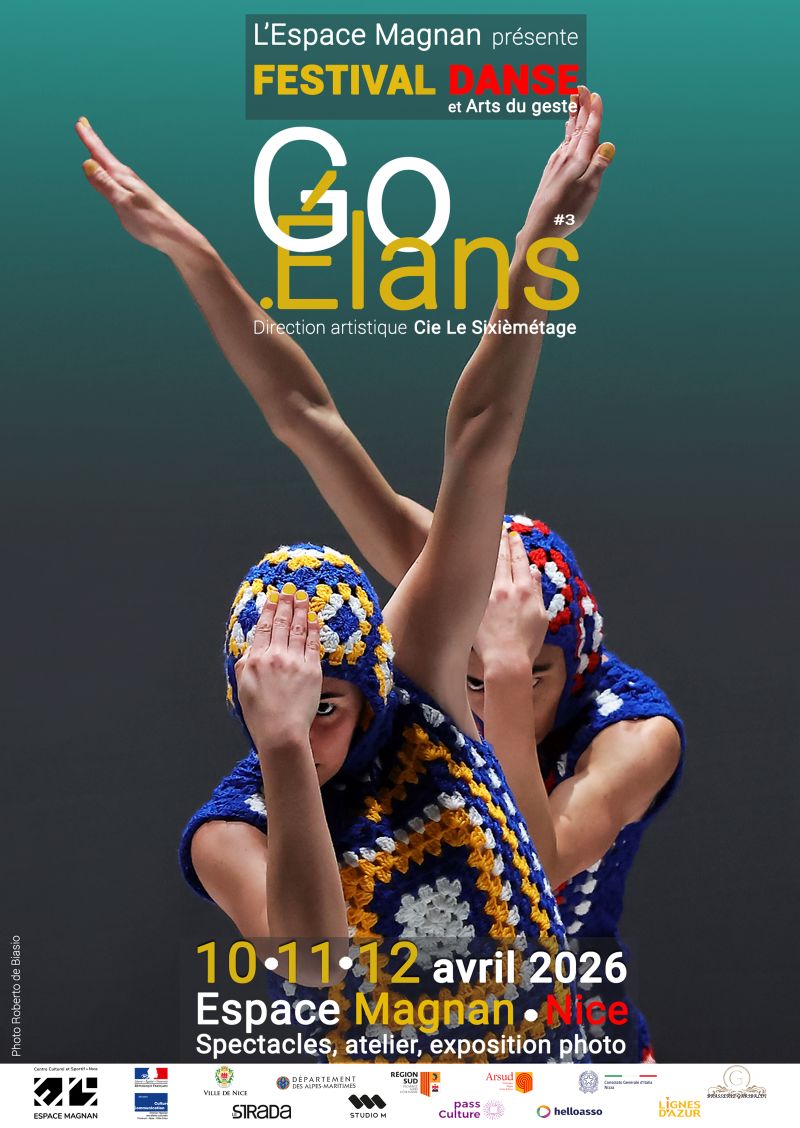 FESTIVAL GO.ÉLANS | 3e édition - du 10 au 12 avril 2026Projet soutenu par l’Espace Magnan et la Cie Le Sixièmétage. Direction artistique Pascal Renault et Jeff Bizieau. > Évènement autour de la danse et les arts du geste dans le cadre d’un partenariat « Artistes associés », 3e édition. BILLETTERIE > Billets ni échangeables, ni remboursables. > PRÉVENTE EN LIGNE (Spectacles, Atelier) : • sur HELLO ASSO • sur PASS CULTURE et à l’accueil de l’Espace Magnan aux horaires d'ouverture > SUR PLACE : billetterie ouverte 1h avant chaque spectacle en fonction des places disponibles. > TARIFS SPECTACLES :